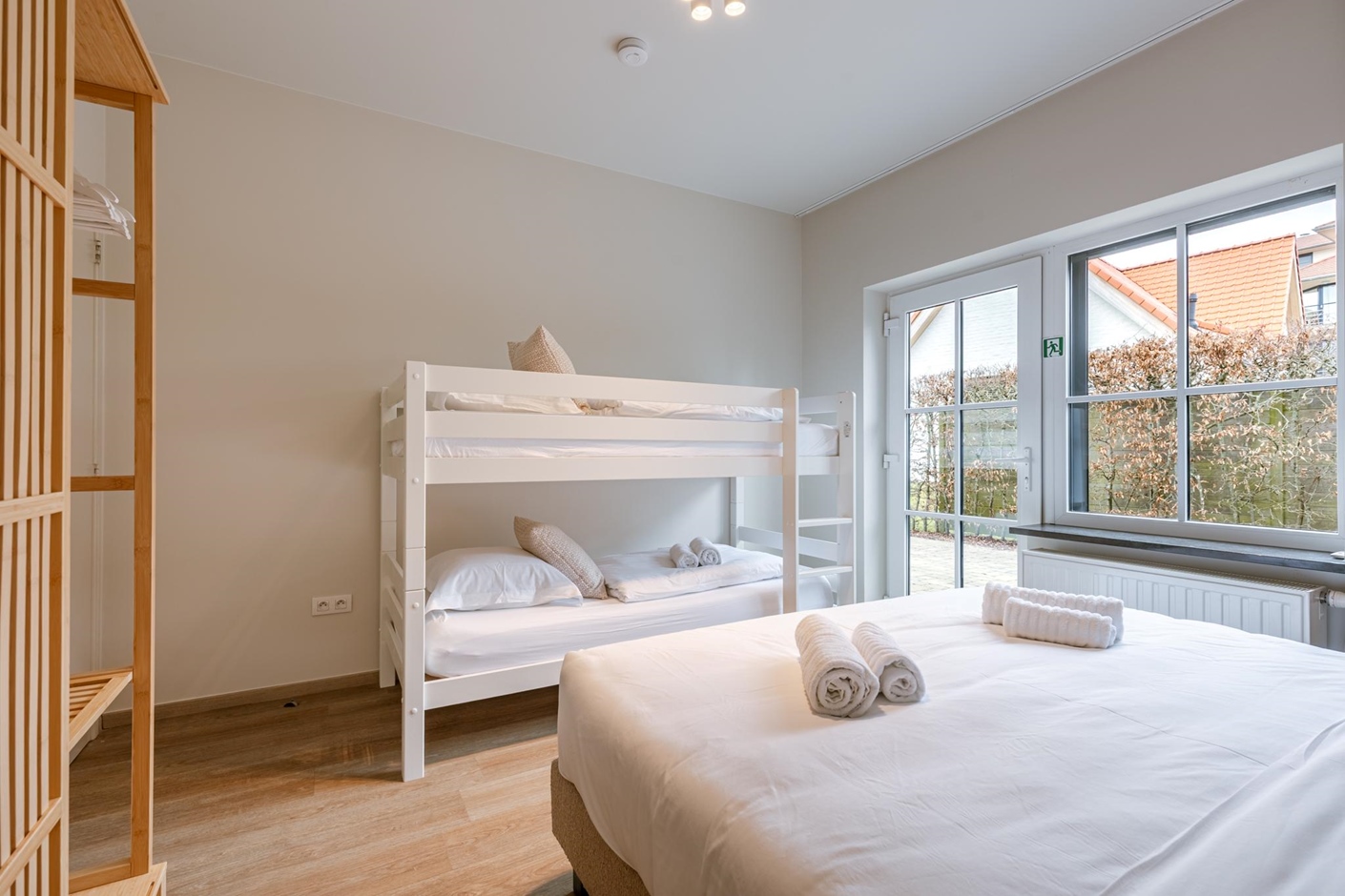 La maison peut accueillir 6 personnes et offre une atmosphère chaleureuse et conviviale. Vous entrez dans un séjour cosy qui se prolonge vers une grande cuisine avec coin repas. Un atout majeur: toutes les pièces se trouvent au rez-de-chaussée, garantissant un confort optimal. La maison dispose de deux chambres : l’une avec un lit double et l’autre avec un lit double et des lits superposés. Une salle de bain avec lavabo, douche et toilettes complète l’ensemble. Depuis la cuisine, vous accédez au jardin agréable, équipé de mobilier de jardin, d’un barbecue et d’un parasol.
